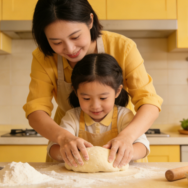 此外,厨房里的精细动作(如捏面团、撕生菜)和数学启蒙(如数勺子、量面粉),是任何早教班都无法替代的感官整合训练。