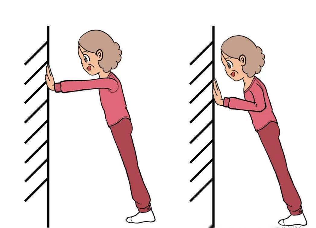 · 站立墙卧撑:站立位,两手前举水平位扶在墙上,双肘微屈对墙做卧撑动作。
