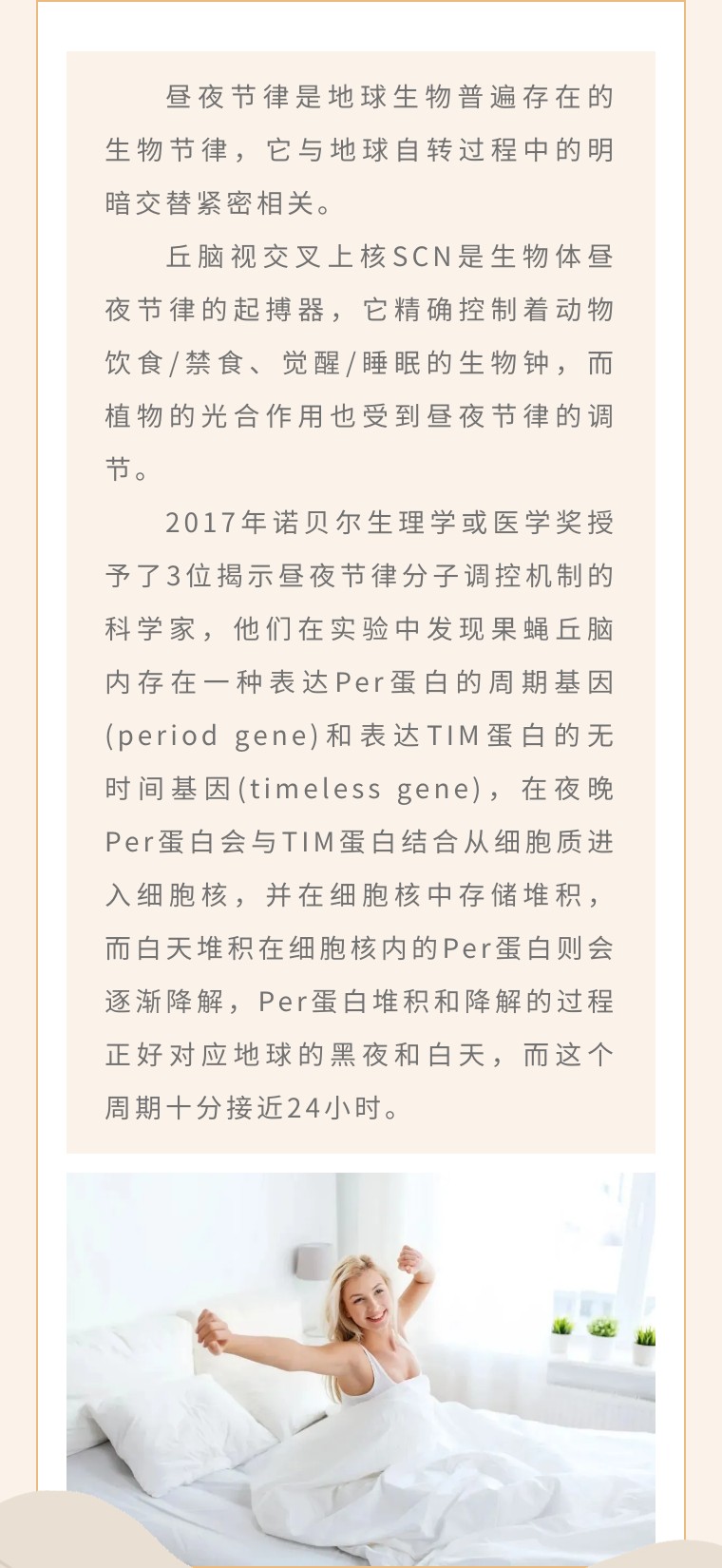 在漫长的演化中,生物们进化出了一套与昼夜同步的生理机制,即昼夜节律。