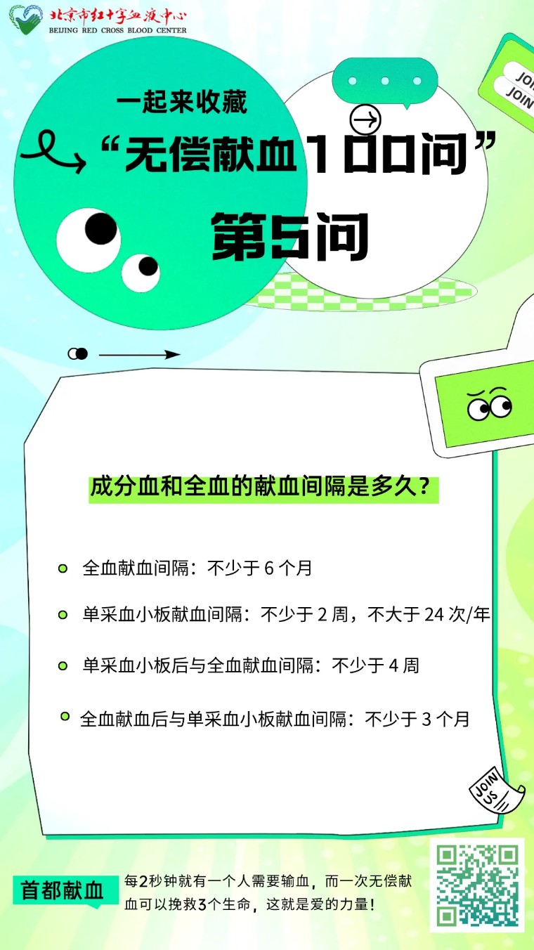 无偿献血科普100问——成分血和全血献血间隔是多久?