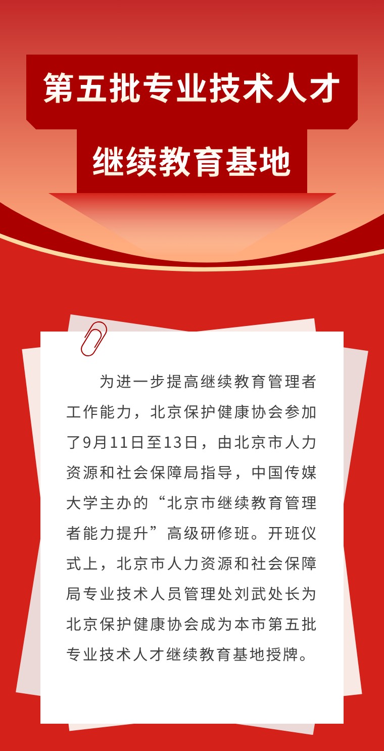 北京保护健康协会获批北京市人力资源和社会保障局第五批专业技术人才继续教育基地