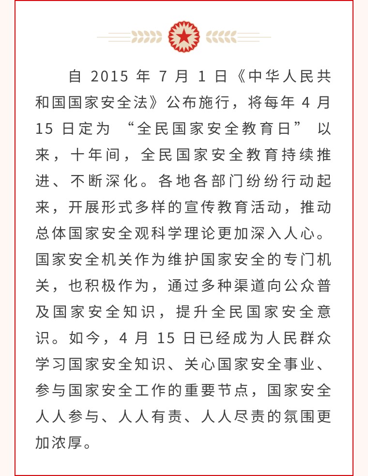 全民国家安全教育 走深走实十周年