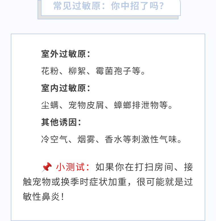 过敏性鼻炎虽不致命,但严重影响生活质量,甚至可能进展为哮喘。如果你或家人有类似症状,建议尽早到耳鼻喉科或过敏反应科就诊,科学管理,告别"无止境的喷嚏"!